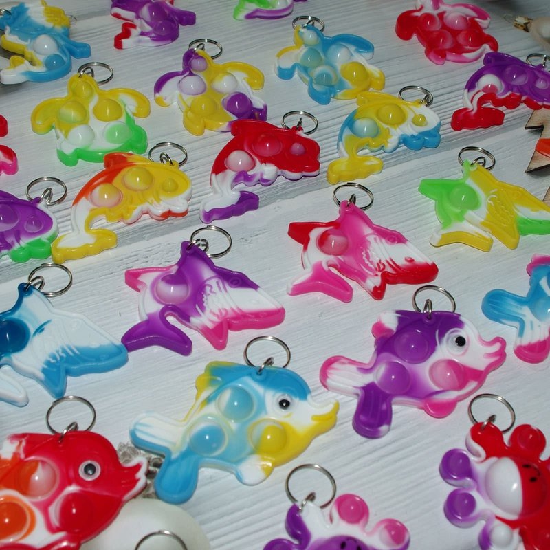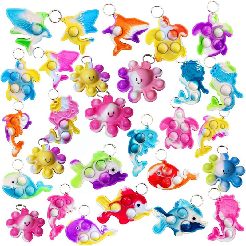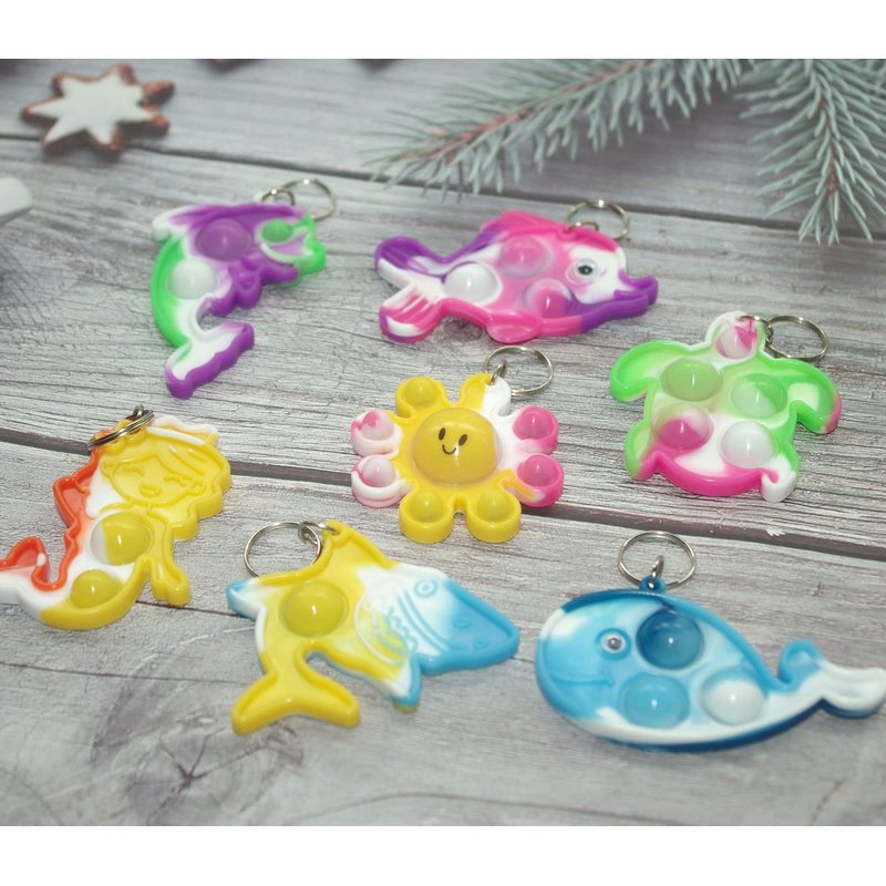 - 1. Cute, tiny, soft, popular, attention, cool shape, bright, many colors, unique, fun, durable. 100 packs ocean fidgets(Octopus Turtle Dolphin Mermaid Whale Shark Fish) mini pop included, random color to send.