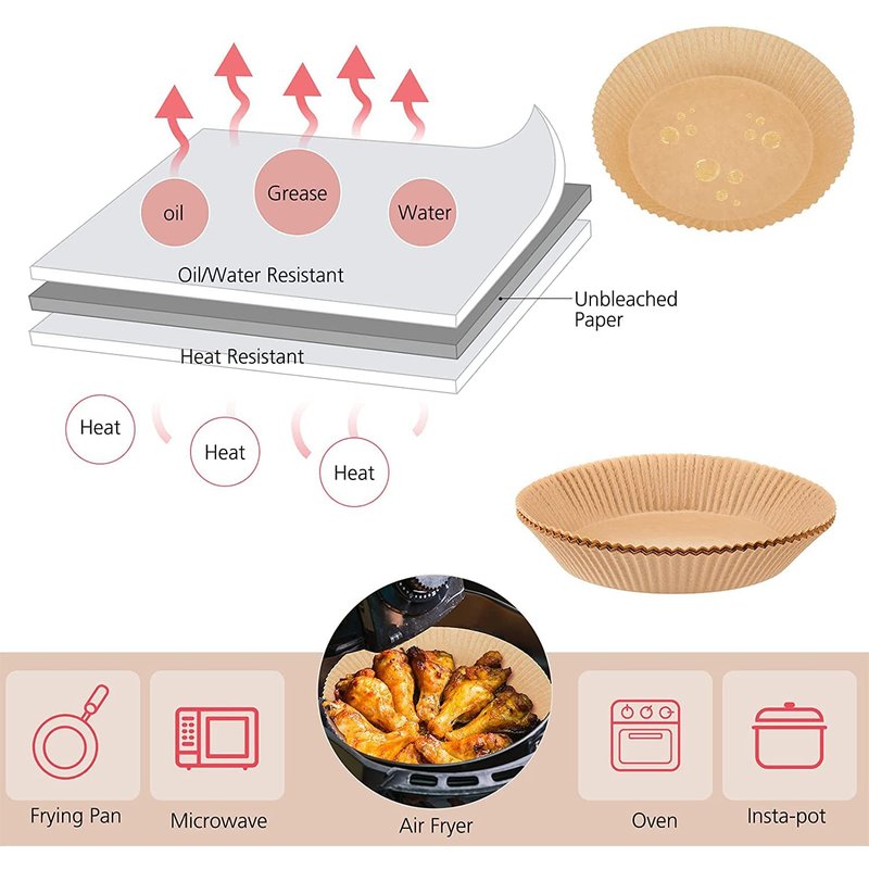 - Suitable for air fryer, microwave oven, oven, steamer, cooking utensils, etc. The paper liner can be used for baking, frying or holding food, suitable for home baking, camping, barbecue, summer parties and so on, light and practical.