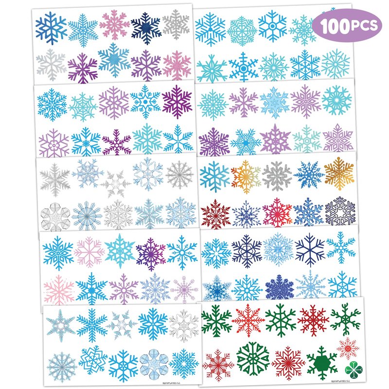 - ❄️ PERFECT TATTOOS FOR SNOWFLAKE THEMED DECORATION: Snowflake tattoos for people who love snowflake, winter, christmas. Featuring 10 sheets with 100 pcs of lovely and colorful design. Each sheet measures 6.1 * 3.1 inches. You can temporarily tattoo them on your body or objects such as phones, bottles, laptop…