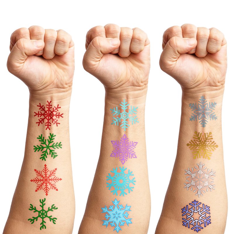 - ❄️ FUN GIFT IDEAS FOR SNOWFLAKE BIRTHDAY PARTY DECORATIONS FAVORS: SNOWFLAKE TATTOOS perfect for themed party, CHRISTMAS PARTY, outdoor parties, birthday parties, school rewards and other party events. SNOWFLAKE are also interesting and lovely gifts for your children. Complement your unique collection with a snowflake tattoo!