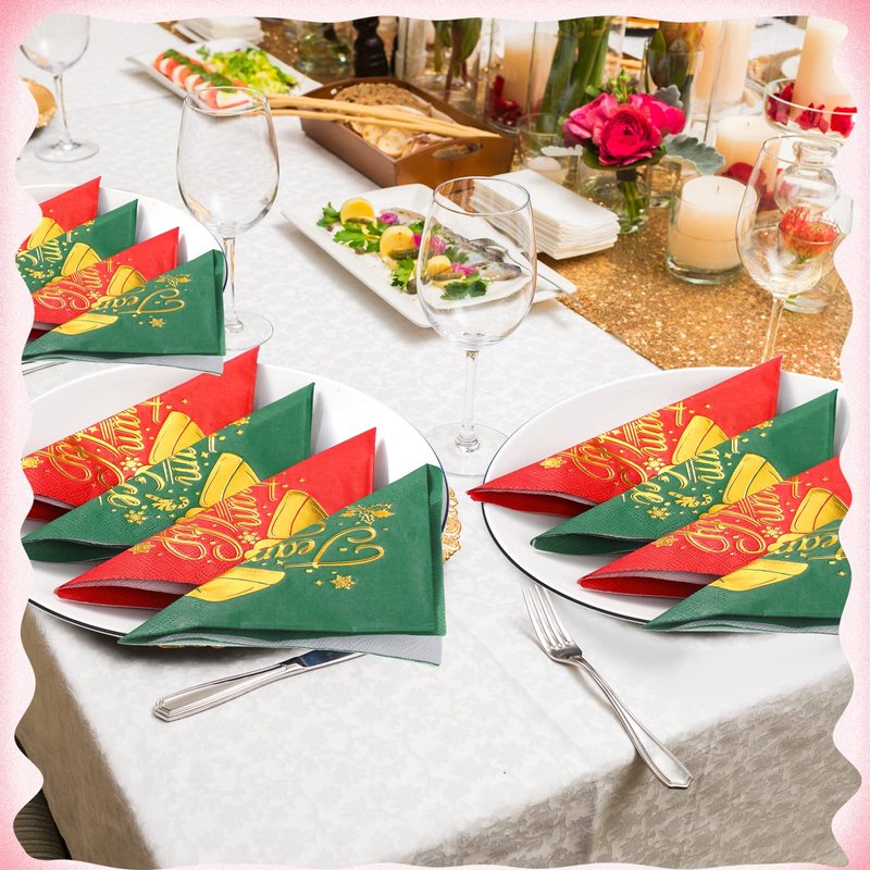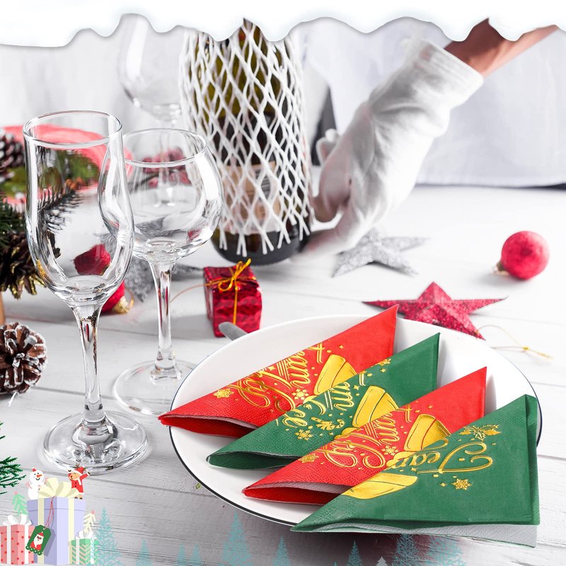 - Rich Quantity and Styles: you will receive 100 pieces of Christmas napkins, printed with 2 designs in red and green colors, 50 pieces per design; Abundant quantity and various styles enough for you to complete upcoming celebration, also suitable for sharing them with your friends and neighbors