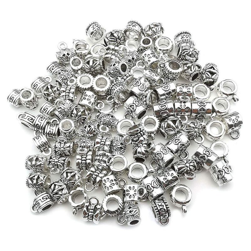- antique silver Bail Tube Beads,Spacer Bead,Bail Beads,Bead Hanger Fit Charm European Bracelet Charms Pendant for Jewelry Making and Crafting , It's fashion, creative, full of special means, is a very useful accessory