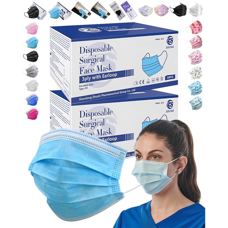 100 PCS Disposable Earloop Face Mask Medical Grade ASTM2100-2019 Level 2 for Adults,35% Melt-Blown,65% Non-Woven,High Filtration Ventilation 3 Layers for Hygiene Security Protection