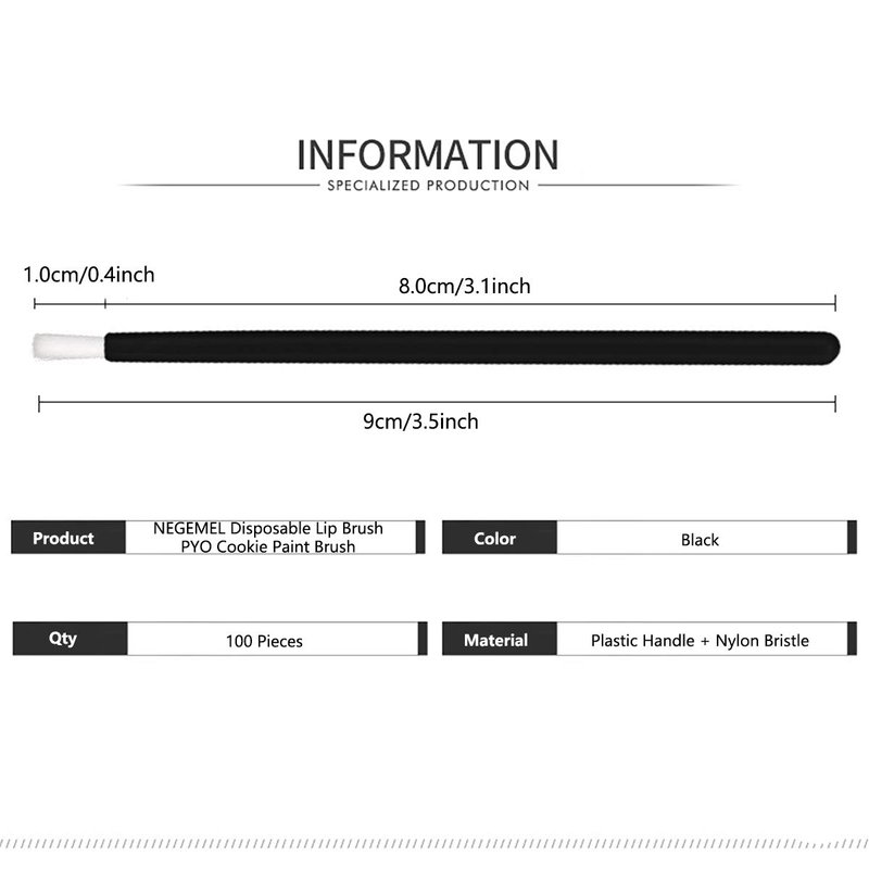 100 Pcs Disposable Makeup Lip Brushes PYO Cookie Paint Brushes Nail Polish Brushes Cosmetic Lip Brush Wands mini paint brushes for cookies (Black)
