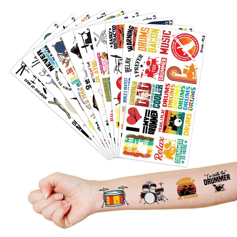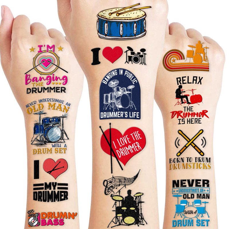 - Widely used: Funny Drum Kit Drummer Music Drumming Marching Band Temporary Tattoos pieces are suitable for many occasions such as birthday party supplies, party decorations, party favors, party bags, DIY decorations, pool and the beach or gift for kids and rewards. Kids temporary tattoos are the best party favors and goodie bags fillers ever for any kind of celebration!