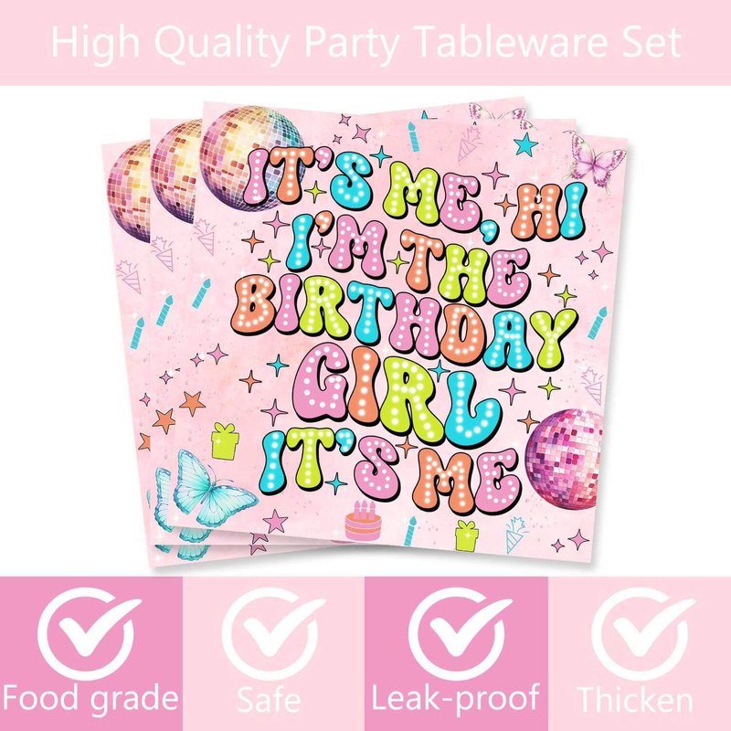 100 Pcs Its Me Hi Im The Birthday Girl Its Me Decorations In My Birthday Era Plates Napkins Forks Cups Dinnerware for Music Theme Women Girls Birthday Party Supplies Favors