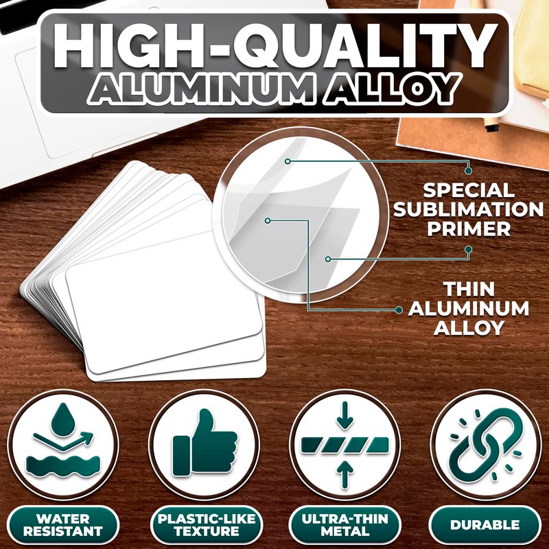 - Premium Quality White Card: Our Metal Sublimation Blanks are made of sublimation coated thin aluminum alloy material, which is not easy to bend and has a nice plastic-like texture. These personalized business cards are durable, with smooth edges, and have no scratches on both sides.