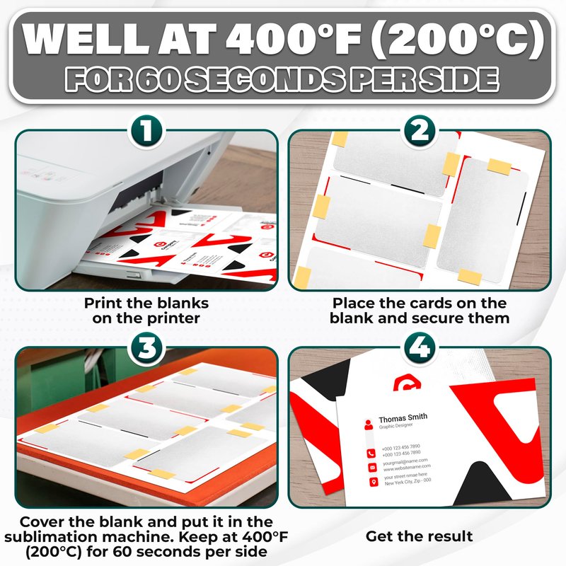 - Elegant Design Printable Business Cards: These custom business cards for small business are designed and you can adds crisp text and vibrant images to both sides of your business cards customizable. Sublimation can be used: well at 400°F (200°C) for 60 seconds per side. These blank credit cards are optimized for laser printers for smudge-free performance.