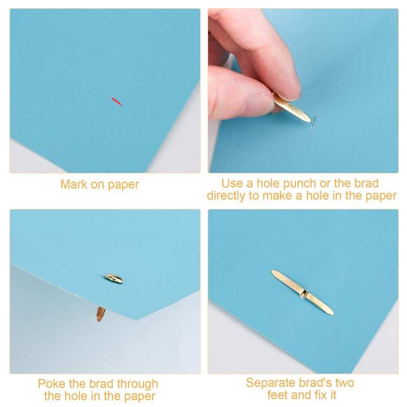 - 【EASY TO USE】 Punch a hole in the thing you are making and poke the brad through the hole, separate brad's two feet and fasten them.