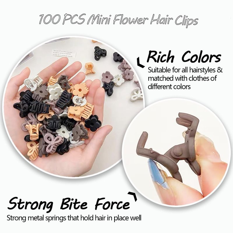 100 PCS Mini Flower Hair Clips 0.7" Small Flower Hair Claw Clips Tiny Matte Daisy Hair Claw Clips Kawaii Non-slip Cute Claw Clips for Thin Long Short Hair Strong Hold Cute Jaw Clip for Women Girls