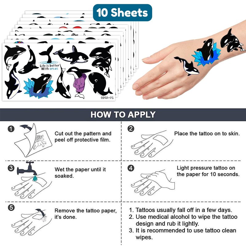 - 🌊ORCA BIRTHDAY DECORATIONS: Hi everyone! An amazing set of 10 sheets including 100 a size of 6.1 by 3.1 inches.ORCA tattoo pieces will be sent to you; these sheets are ideal for ORCA birthday decorations, ORCA birthday party decorations, ORCA party favor, ORCA birthday party, and more.