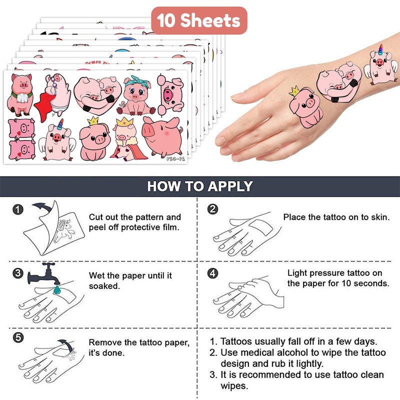 - 🐖PIG BIRTHDAY PARTY: Hi everyone! An amazing set of 10 sheets including 100 a size of 6.1 by 3.1 inches. PIG tattoo pieces will be sent to you; these sheets are ideal for PIG birthday party, PIG birthday party supplies, PIG party decorations, PIG party favors, and more.
