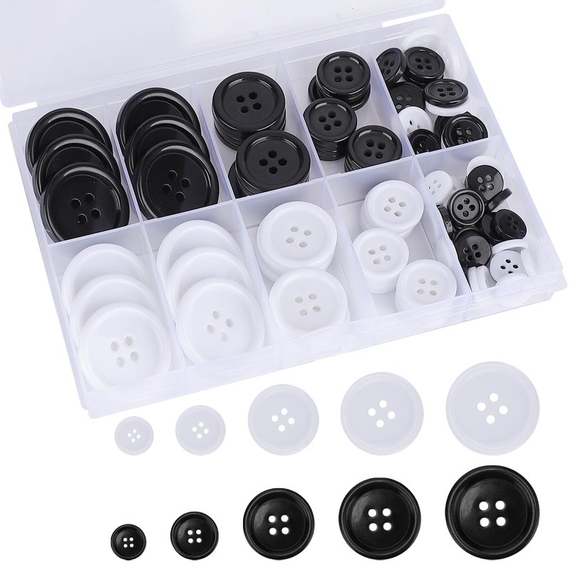 - Package includes: 100 pieces mixed resin sewing buttons in 5 sizes (0.39inch, 0.5inch, 0.6inch, 0.8inch and 1inch), black and white color.