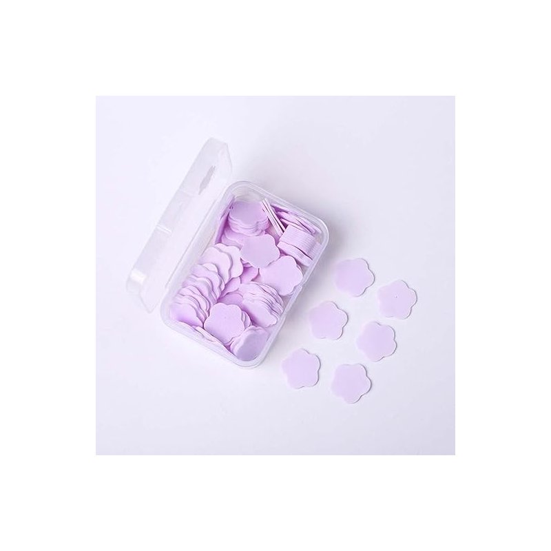100 Pcs Purple Mini Portable Travel Soap Paper Sheets, Flower Shape Disposable Paper Soap Flakes, Hand Wash Cleaning Washing Hand Toiletry Paper Soap Sheets Foot and Hand Care, Hand Wash