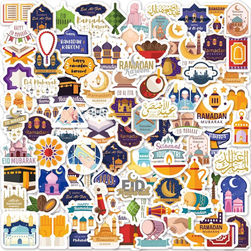 100 Pcs Ramadan and Eid Stickers, Ramadan Mubarak Eid Mubarak Stickers for Kids and Adult, Islamic Ramadan Karrem Stickers for Home Decorations Gift Bags Laptop Skateboard Water Bottles Scrapbook