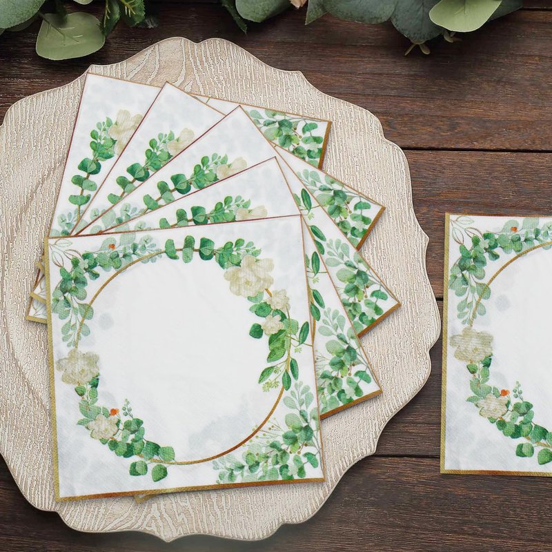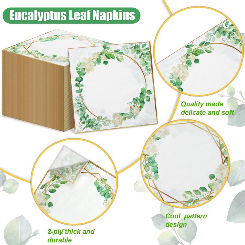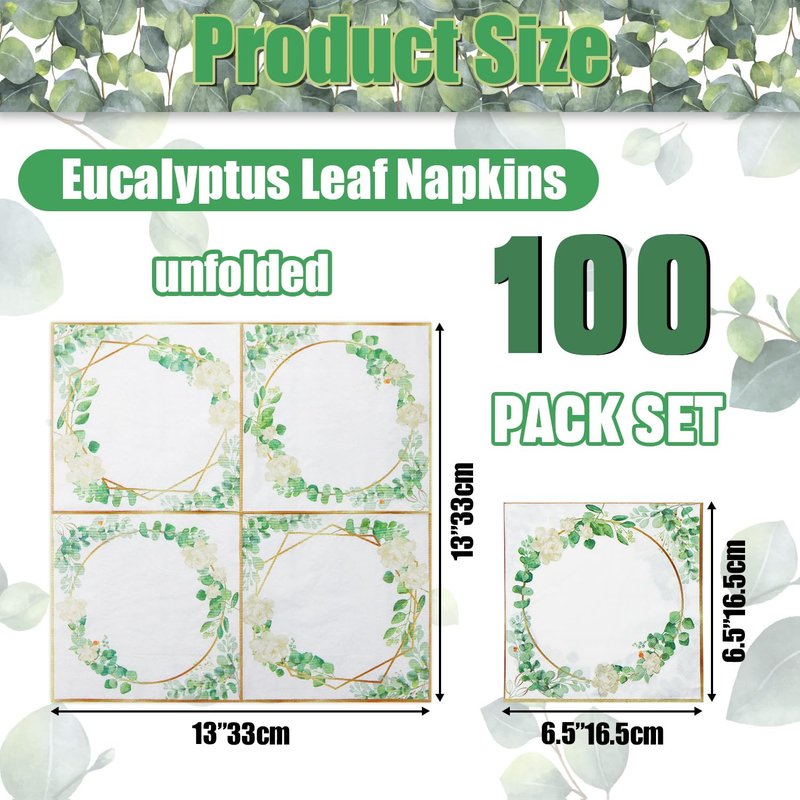 Enhance your party experience with these 100Pcs sage green napkins featuring a delightful Eucalyptus Leaf design.