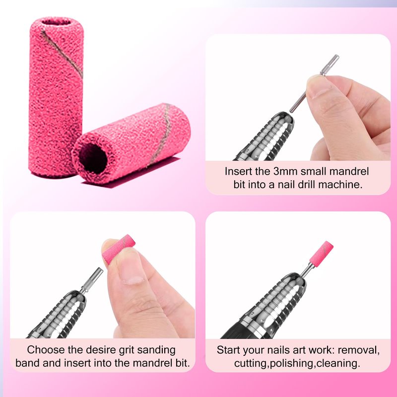 - Versatile Application: Compatible with most 3/32" nail drill machines, these multifunctional sanding bands are suitable for grinding, smoothing, shaping, shortening, and polishing all types of nail art, including cuticle removal.