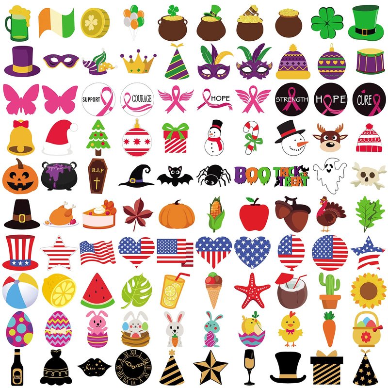 100 Pcs Seasonal Icons for Felt Letter Board Holiday Message Board Decoration Letterboard Accessories Holiday Letterboard Icon with Adhesive Dots for Changeable Letter Board Halloween Christmas Decor