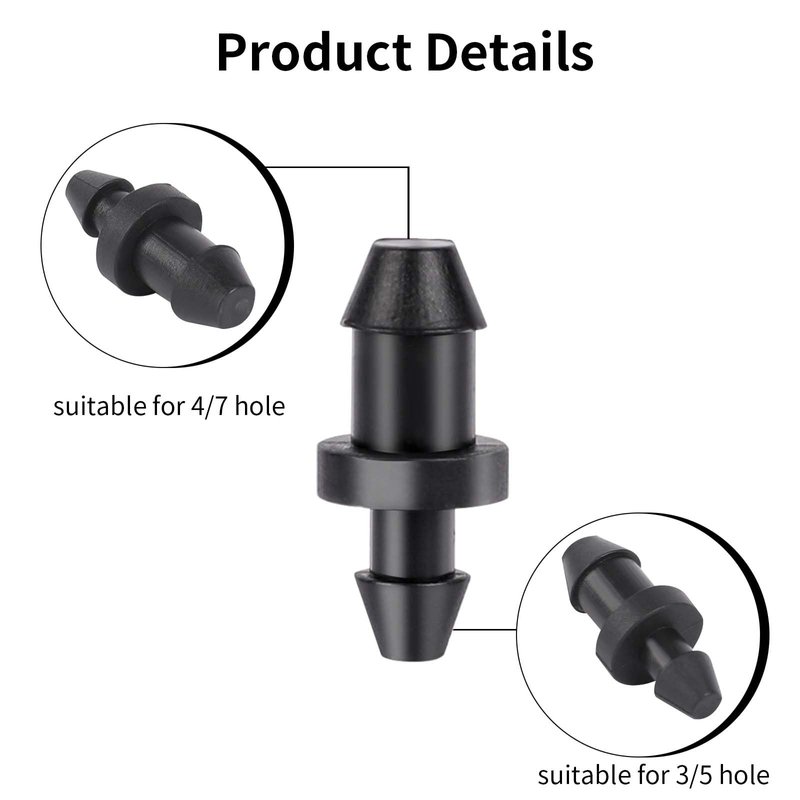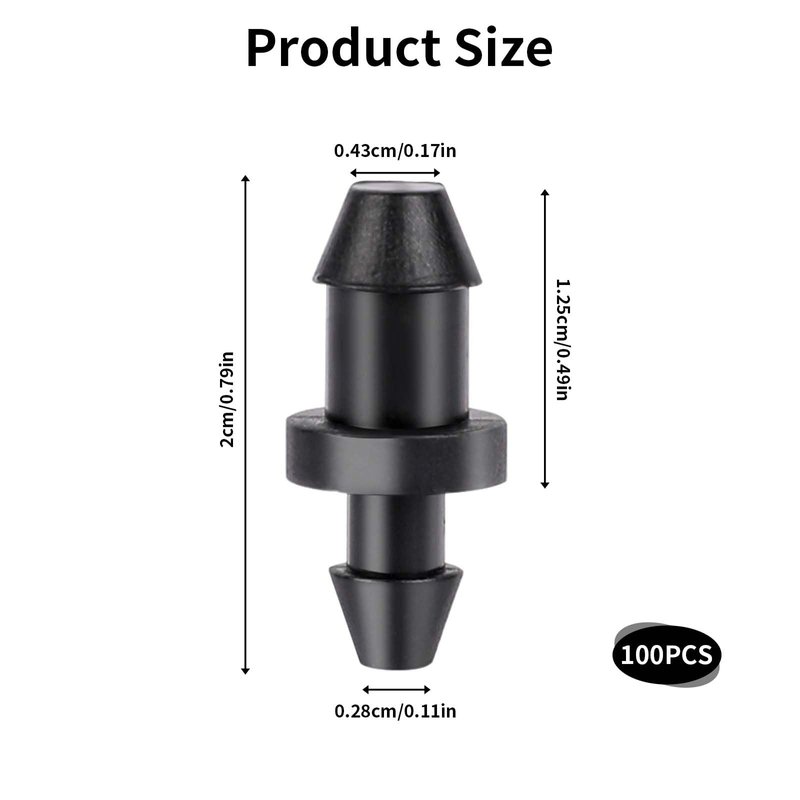 - ULTIMATE CONVENIENCE: The package includes 100 pieces of drip irrigation plugs, suitable for daily use and replacement. These black plugs are made of durable plastic material that is UV-resistant and can withstand harsh weather conditions. With different sizes at both ends, One end is suitable for standard holes of 3 - 6 mm, or one end covered with any 1/4 inch feeder, and the other end is suitable for worn transmitters of 7 mm or about 1/4 inch hole