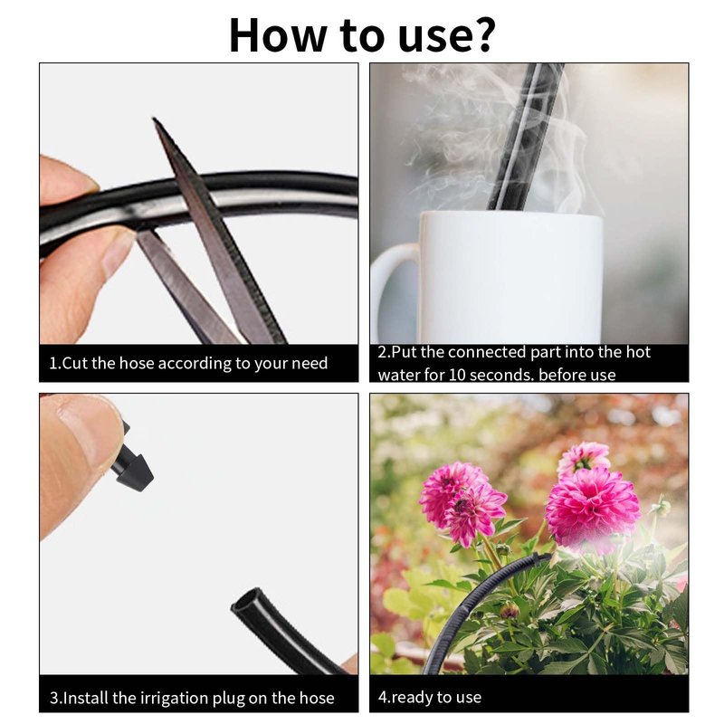 - EASY INSTALLATION: Our 1/4 inch tube end closure irrigation plugs are easy to install, without the need for glue, tools, or clamps. Just push the tubing firmly over the end plug fitting. To simplify the process, we recommend putting the tubing end into 75°~85°C hot water for 10 seconds before pushing them in place.