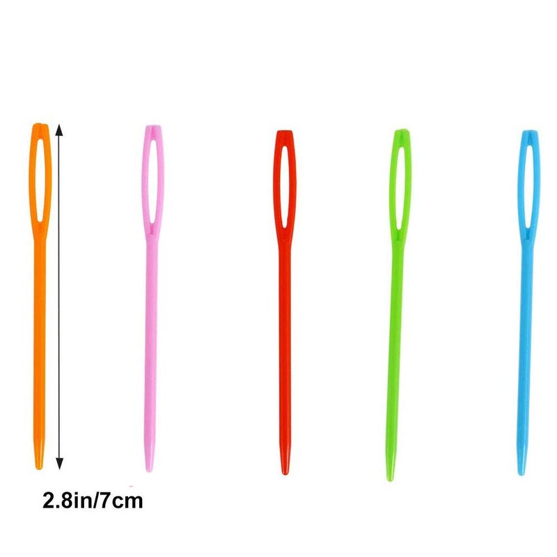 - COLOR: 100 Plastic sewing needles in 20Blue+20Green+20Pink+20Red+20Orange