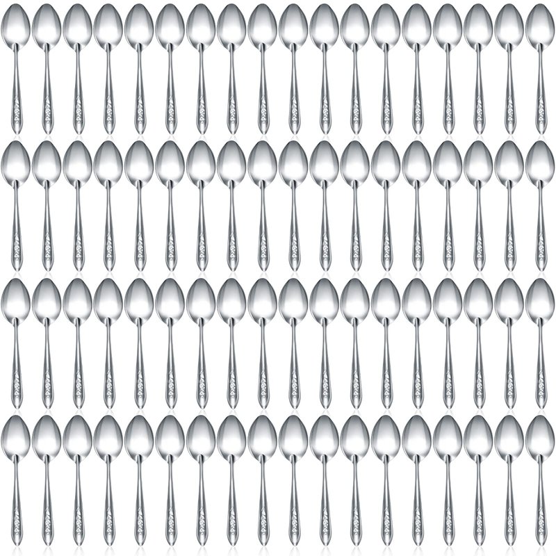 Features:You can send the spoon sets for dining table to your mother, wife, sister, girlfriend, son, brother and friends. They will feel your care and love, and your relationship will be improved.The soup spoons are proper in size and light in weight, which can be put in your sideboard, without taking up too much space.Specifications:Material: stainless steelColor: silverSize: about 17 x 3.7 cm/ 6.69 x 1.46 inchesPackage includes:100 x Dessert spoonsNotes:Manual measurement, please allow slight errors on size.The color may exist slight difference due to different screen displays.