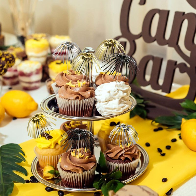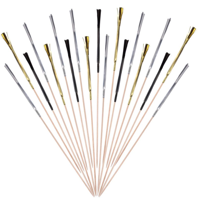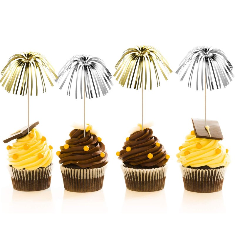 100 Pieces Firework Cupcake Toppers Graduation Foil Frill Toothpicks Holiday Cake Decorations 9 Inch Shape Food Picks for Halloween Party Favors Supplies (Black, Gold, Silver)