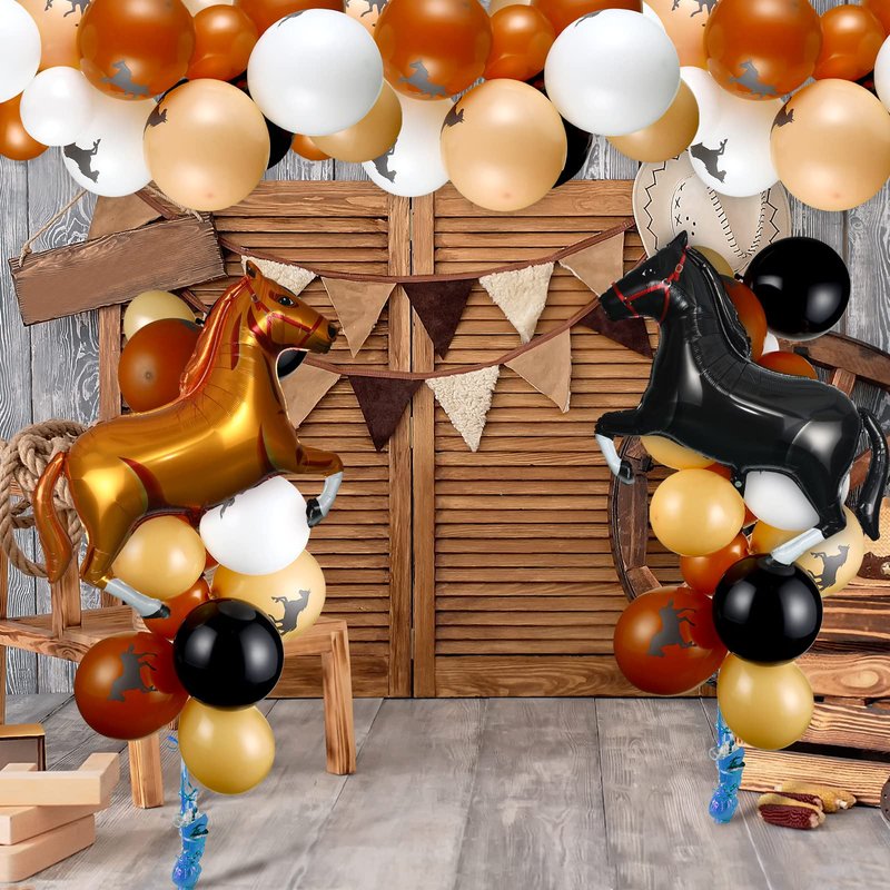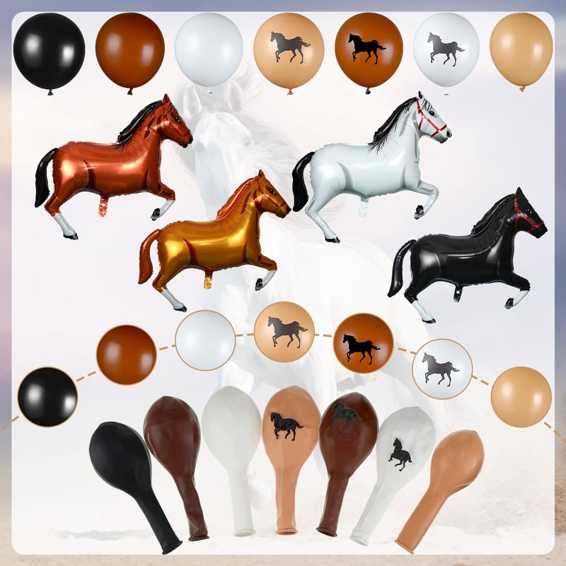 100 Pieces Horse Balloons Cowboy Party Decorations 40 Inches Horse Shaped Aluminum Foil Balloon Latex Balloons Horse Themed Garland Arch Kit for Birthday Baby Shower (Brown,Cowboy)