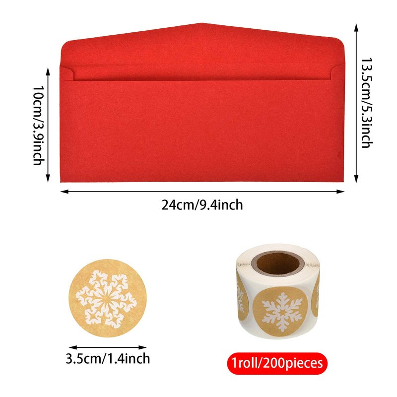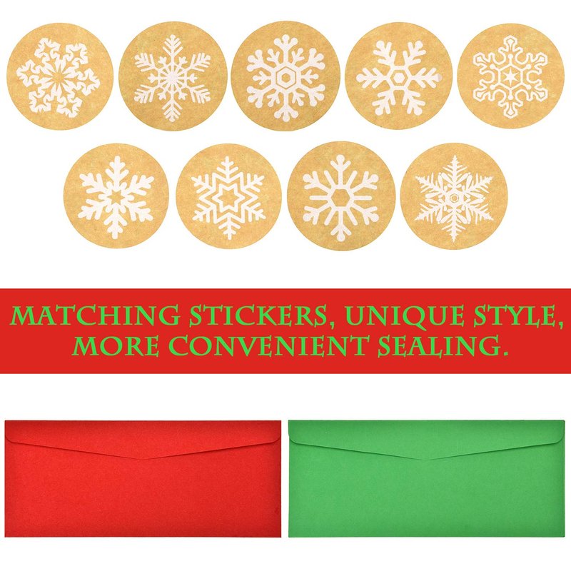 - Elegant design: these envelopes are red and green, which are classic Christmas color, come with kraft paper snowflake stickers, whether the color of the envelopes or the pattern of the stickers are full of winter Christmas breath
