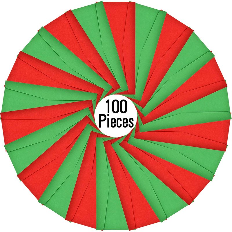 Features: Elegant design: These envelopes are red and green, which are classic Christmas color, come with kraft paper snowflake stickers, whether the color of the envelopes or the pattern of the stickers are full of winter Christmas breath. Wide usages: Very suitable for Christmas and Valentine's Day to send holiday cards, greeting cards, invitations, photos, letters, holiday mail to your friends and families, can also be applied as wedding or party invites, scrapbooking, card-making, gift card wrapping. Specifications: Material: colored adhesive paper, kraft paper Color: as the pictures shown Envelope size: approx. 11 x 24.5 cm/ 4.3 x 9.7 inch Each sticker diameter: approx. 3.5 cm/ 1.4 inch Package includes: 100 x Gift card envelopes 1 Roll kraft paper stickers (200 pieces) Note: Manual measurement, please allow little size errors. Because of lighting and screen settings, please note there might be slight color difference between the pictures and the actual product.