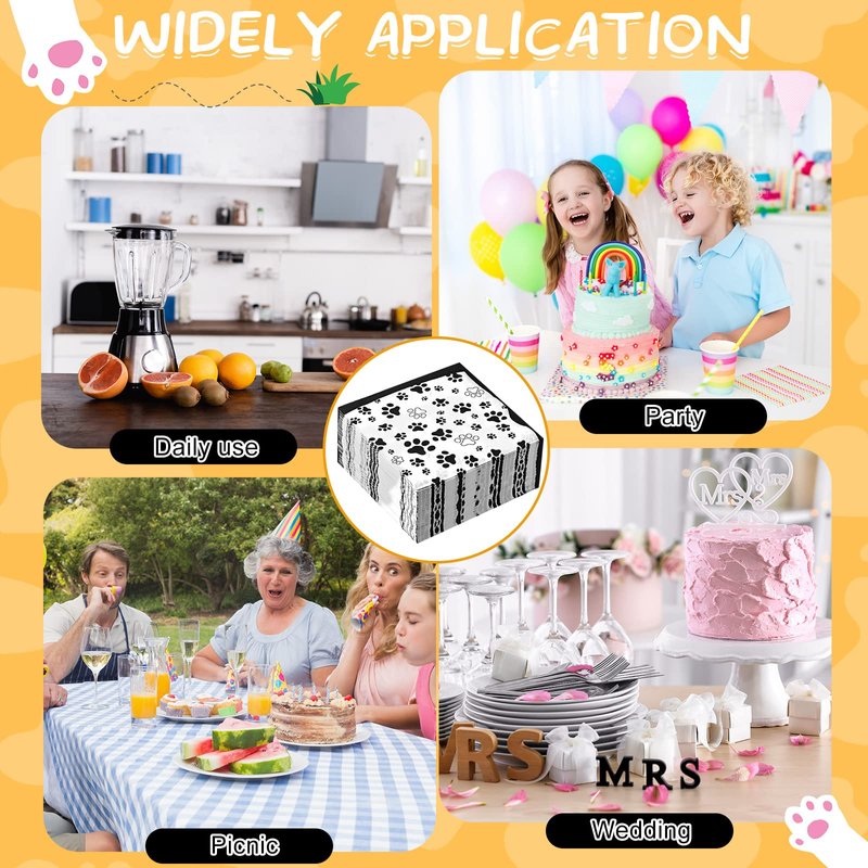 - Soft and Practical to Use: consisting of quality 2 layer paper material, these paw print party supplies are soft, disposable and absorbent, not easy to tear when in use; You can clean them easily, just need to throw them away after finishing using them