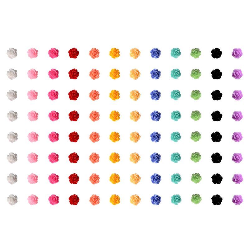 100 pieces Rose Embellishments for Nail Art Charm or jewelry making, 3D with Flat Back Resin Beads Manicure Multicolor Flowers