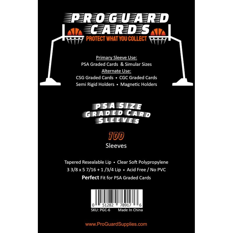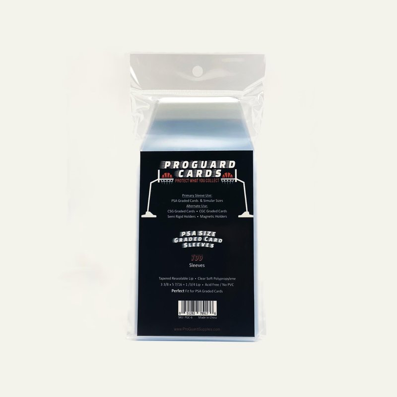 Brand New Perfect Fit PSA Graded Card Sleeves 100 Sleeves per pack. The only sleeve you need to protect the majority of you SLIM card cases. High quality polypropylene 2mil from ProGuard Cards We strive to only bring high quality products to the marketplace.