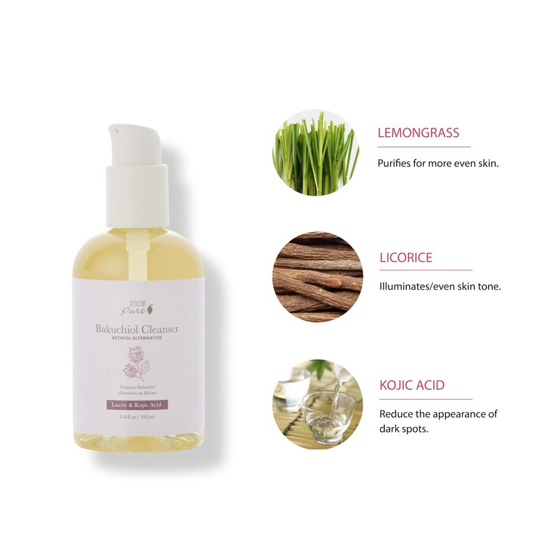 100% PURE Bakuchiol Face Cleanser Plant-Based Retinol Alternative Anti Aging Face Wash Gentle Kojic Acid & Licorice Daily Skincare Boost - Fresh Foam Facial Cleansing for Women & Men - 3.4 fl oz