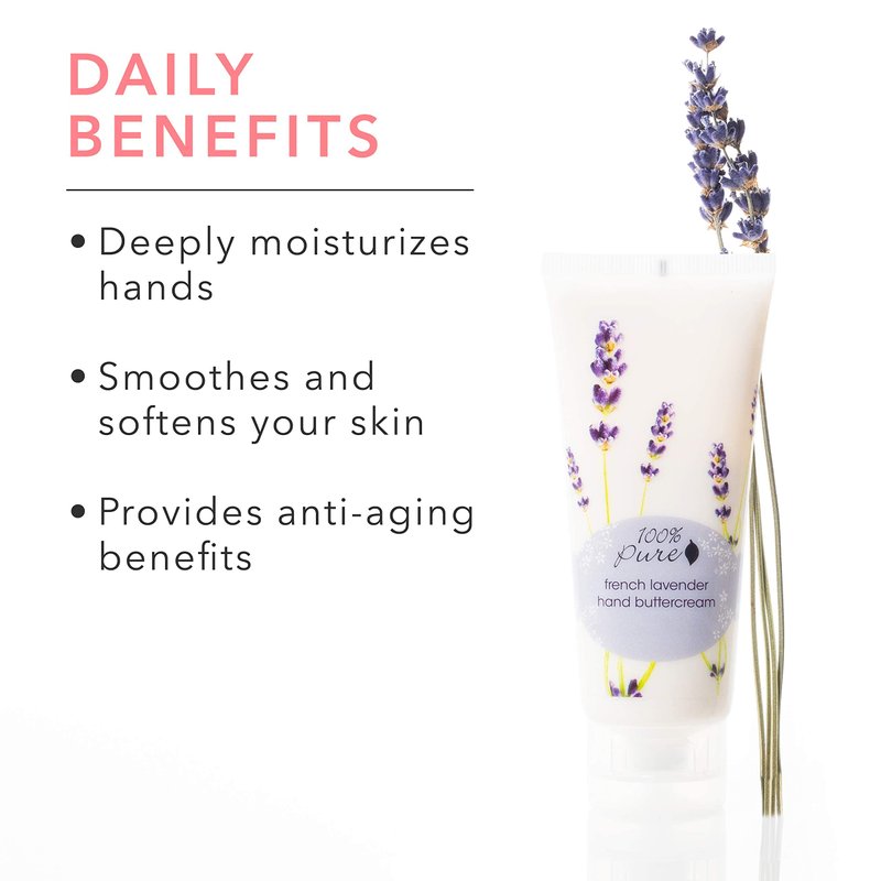 100% PURE French Lavender Hand Cream (Hand Buttercream), Dry Skin Hand Lotion, Made with Shea Butter, Natural Lotion for Dry Hands - 2 Fl Oz