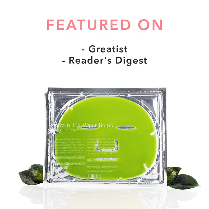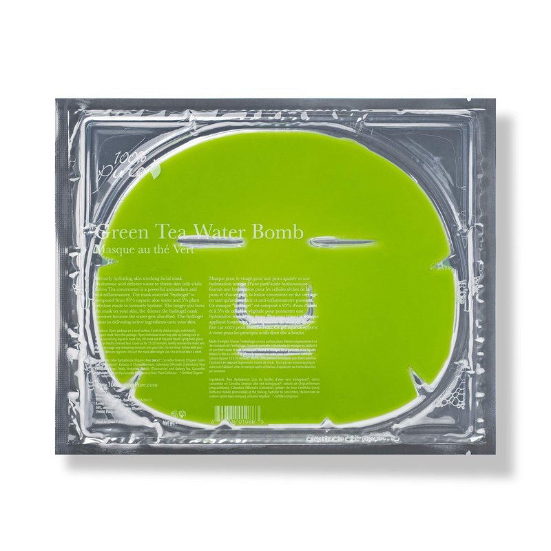 100% PURE Green Tea Water Bomb Mask (1 PC), Hydrating Face Mask with Hyaluronic Acid, Skin Care, Anti-Aging, Toning and Soothing Face Care - 1 PIECE