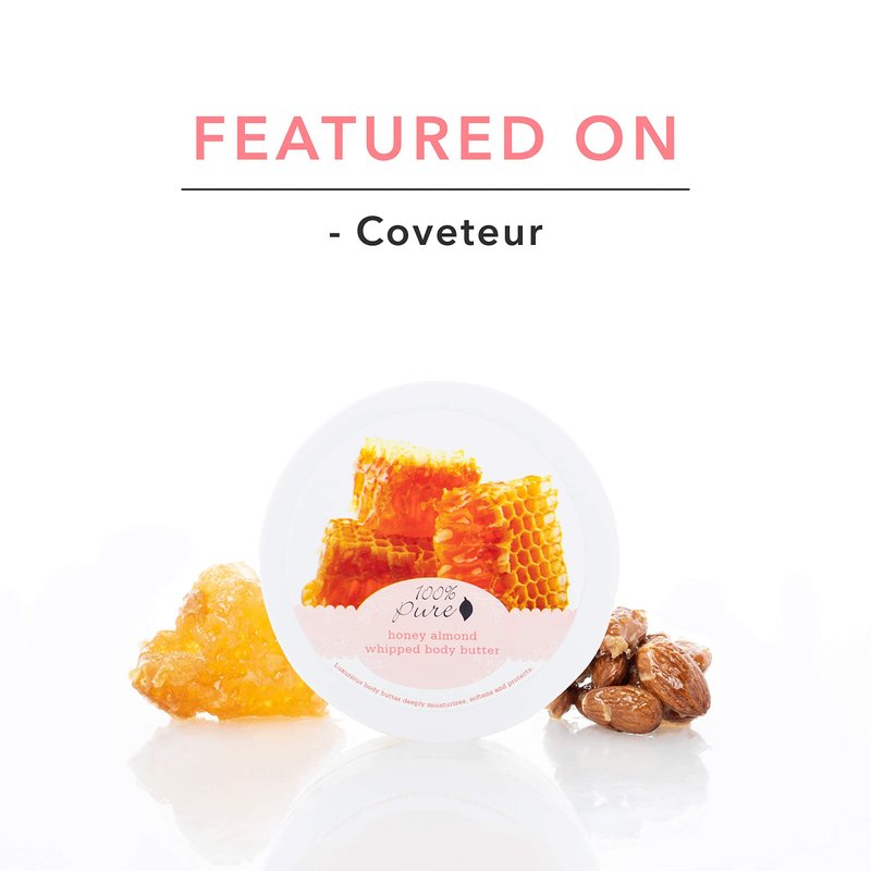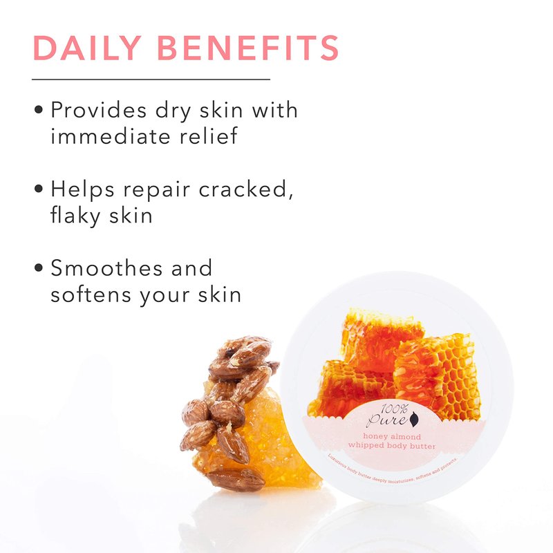 100% PURE Honey Almond Whipped Body Butter, Body Lotion for Dry Skin, Made with Shea Butter, Cocoa Butter, Moisturizing Body Cream, Natural Lotion - 3.4 oz
