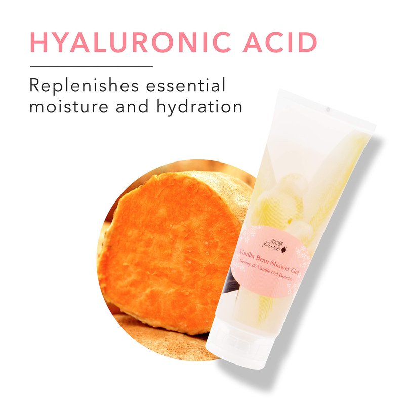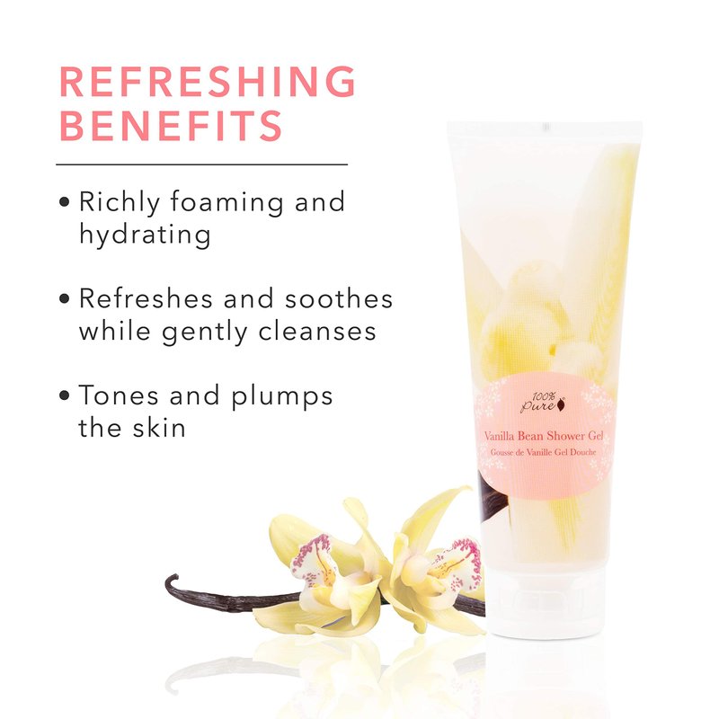 100% PURE Vanilla Bean Shower Gel Natural Foaming & Hydrating Body Wash - Deeply Moisturizing Gentle Soap Cleanser for All Skin Types, Even Sensitive - Gluten-Free - 8 Fl Oz