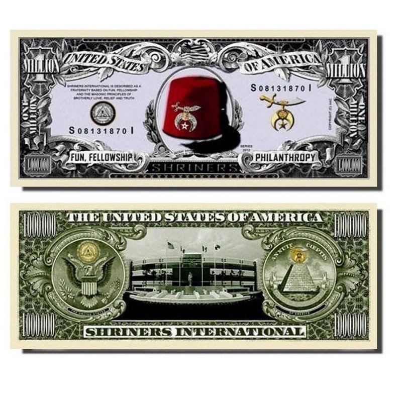 100 Shriners Million Dollar Bill with Bonus “Thanks a Million” Gift Card Set