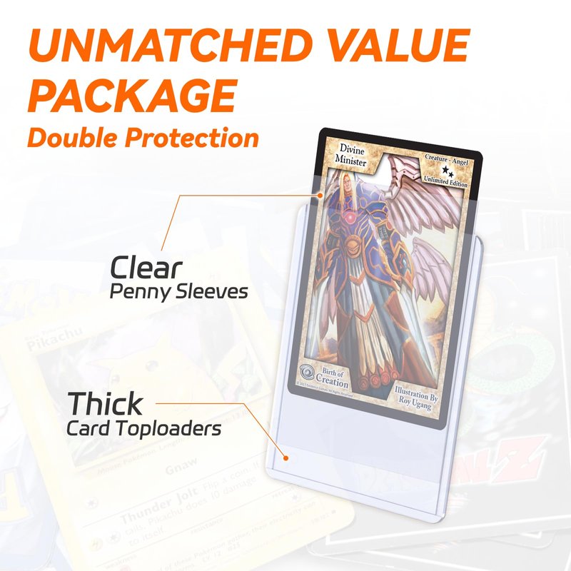 - 【DOUBLE DEFENSE】Achieve superior card protection with the combination of our hard card sleeves and penny sleeves; These materials are not only effective in safeguarding your cards but also offer a cost-effective, convenient, and hassle-free solution for collectors