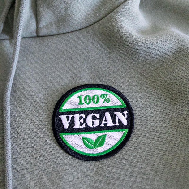 This eco-friendly, iron-on patch is the perfect way to show your commitment to a vegan lifestyle. Featuring bold, green embroidery and a clear “100% Vegan” message, this patch makes a statement on jackets, bags, hats, or any accessory.