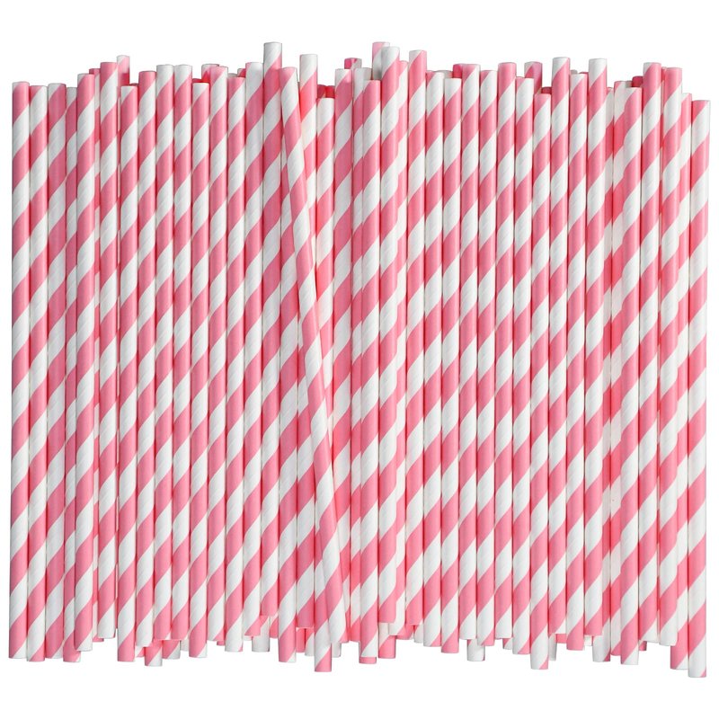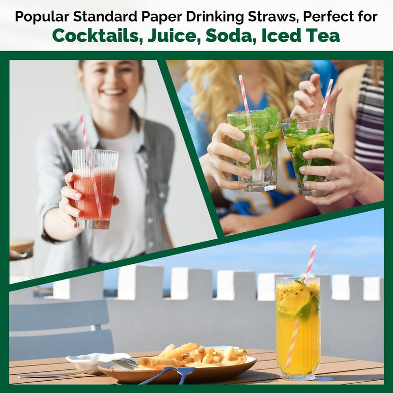 [1000 Count] Chunspak Pink and White Striped Paper Drinking Straws Bulk, 7.75" x0.24", Unwrapped - Biodegradable and Compostable