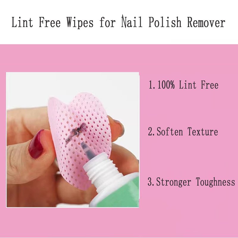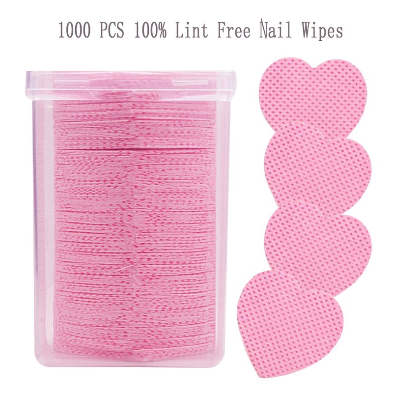 - Lint Free Nail Wipes Large Quantity & Easy to Carry: Nail Polish Remover Pads, Nail Wipes,You will get 5 boxes (1000 pieces) pink lint free nail wipes. Special non-woven fabric with pinhole design make these nail pads real lint-free. The durable plastic box keeps them well-packaged from dirt and moist, and takes up no space in your bag for business trips and travel. The nail polish remover pads have a lovely heart shape design, enough quantity can meet you daily need.