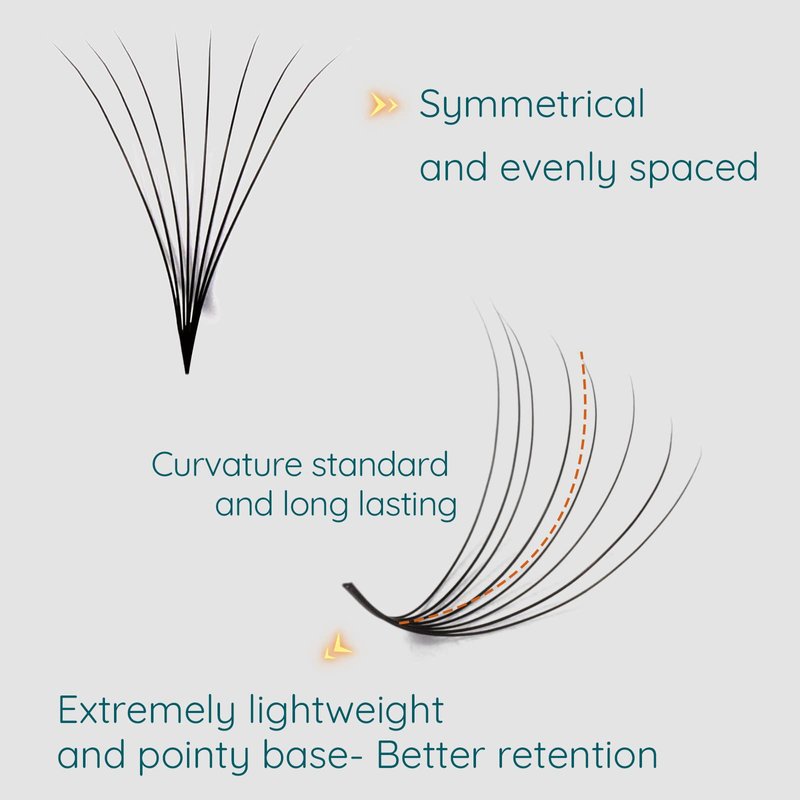 - EASY TO USE: Loose fans lash extensions are easier to use while working compared to normal tape lash trays. You can quickly pick up and apply eyelash fans with tweezers,the Promade fans are not attached to the tape, the premade fans won’t fall apart, moreover eyelashes are clean without residue.