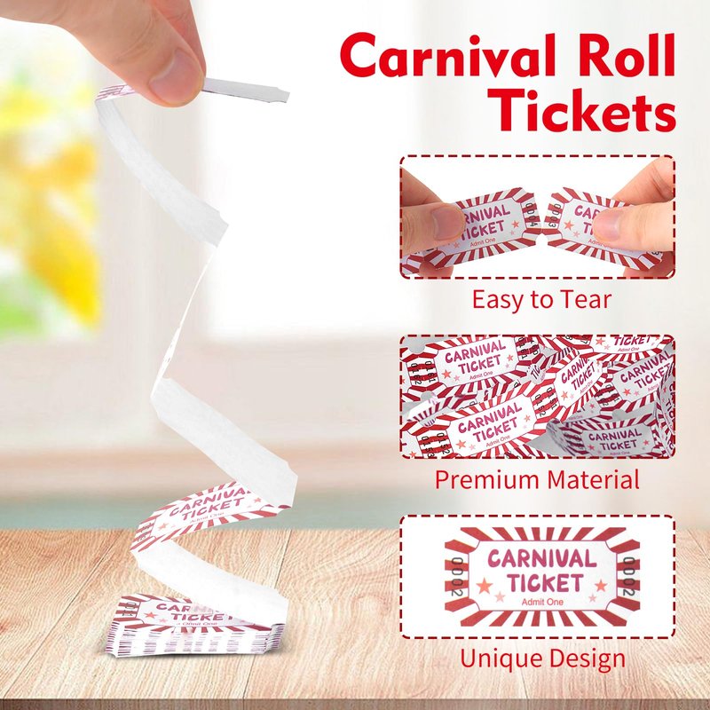- 5.Versatile: Party Tickets for carnival tickets, circus tickets and various events.It is a perfect gift for family and friends.It is a perfect carnival party decoration not to be missed.