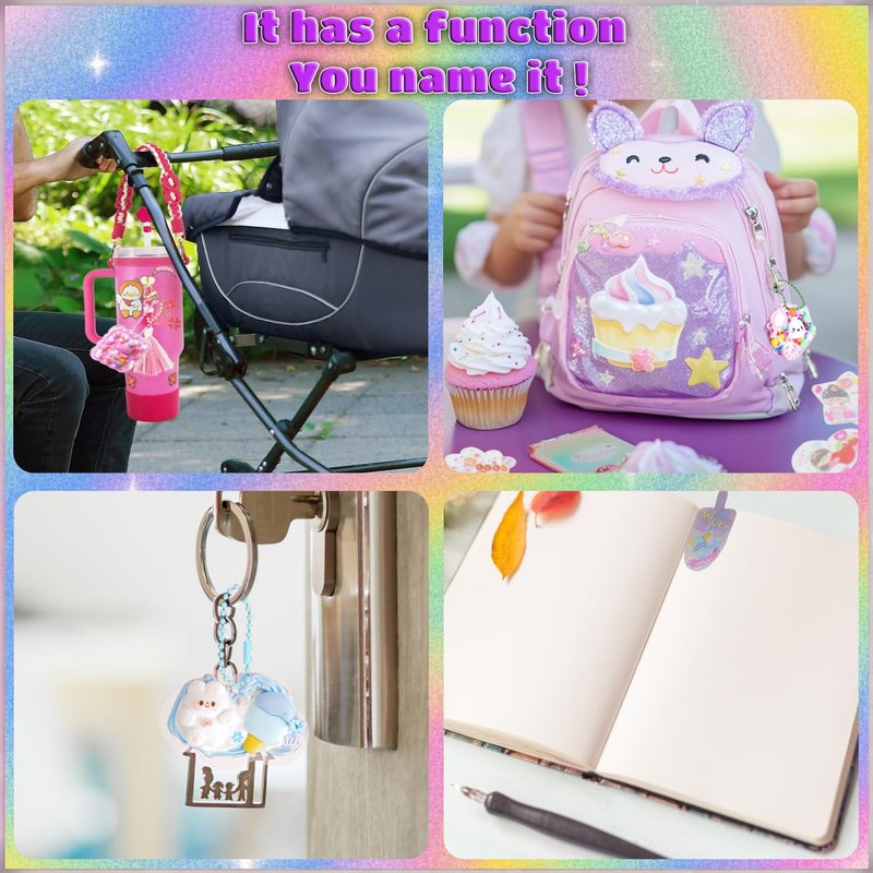 1000 Pieces of Multi Style Waterproof Stickers, 50PCS Easy DIY Keychain Bookmark Making Kit, Unicorn, Princess, Cute Animal, Arts Craft Supplies for Kids, Birthday Gifts for Boys and Girls Aged 4-8