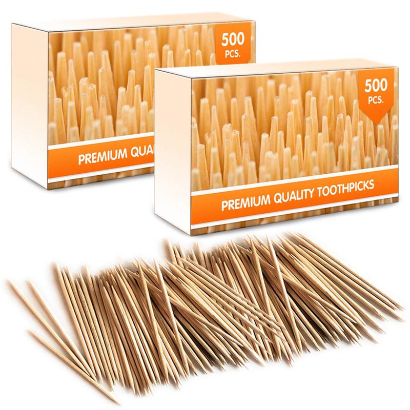 - 🎍 MADE OF PREMIUM BAMBOO WOOD: These teeth tooth picks are sure to efficiently remove food from your teeth. Convenience and quality are assured by the usage of bamboo (ultra-strong & environmental friendly). With sharp tips at both ends, you are sure to get the most out of each of the 1000 toothpicks (2 x 500 pcs) included. Additionally, these round toothpicks are flexible and highly durable and of premium quality.