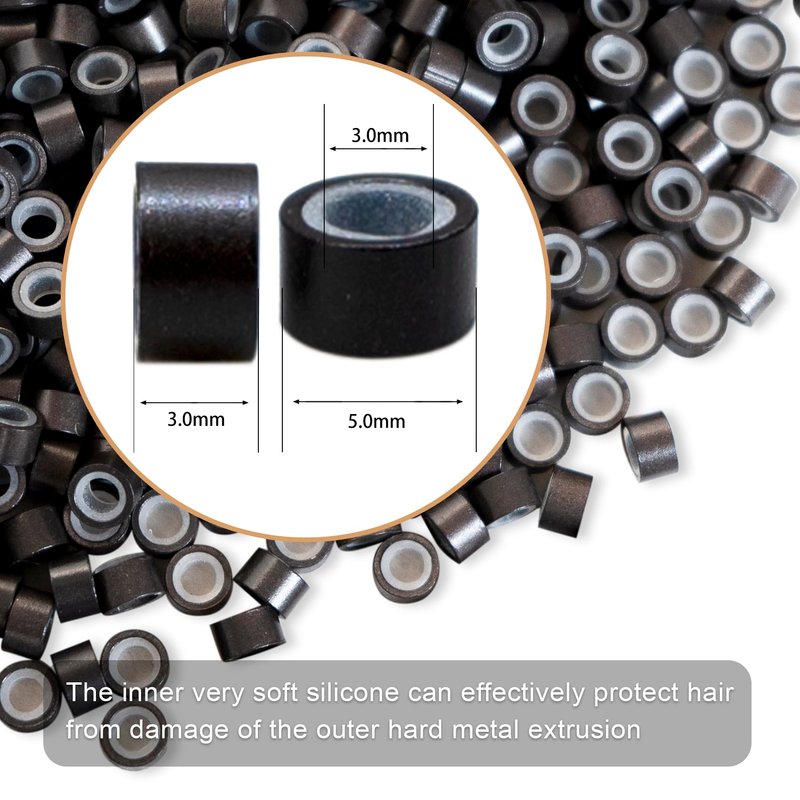 1000pcs Hair Extensions Beads Micro Links Beads 5mm Silicone Lined Beads for Hair Extensions (Dark Brown)