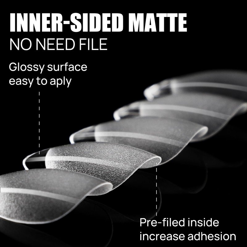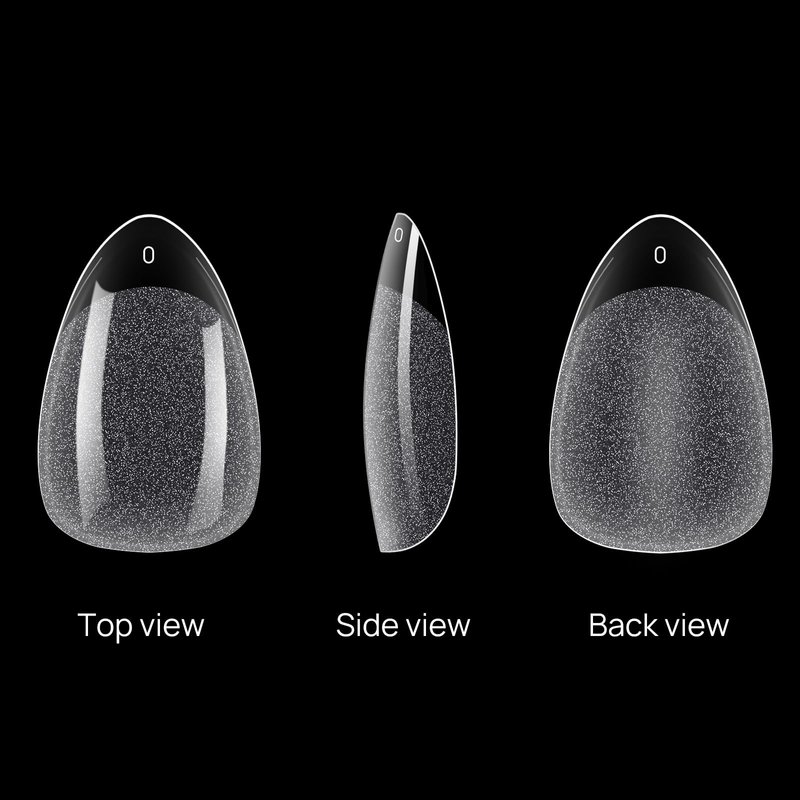 Almond nail tips feature a half matte design that prevents bubble formation during application. Additionally, they eliminate the need for nail buffing, reducing potential damage to the nails.