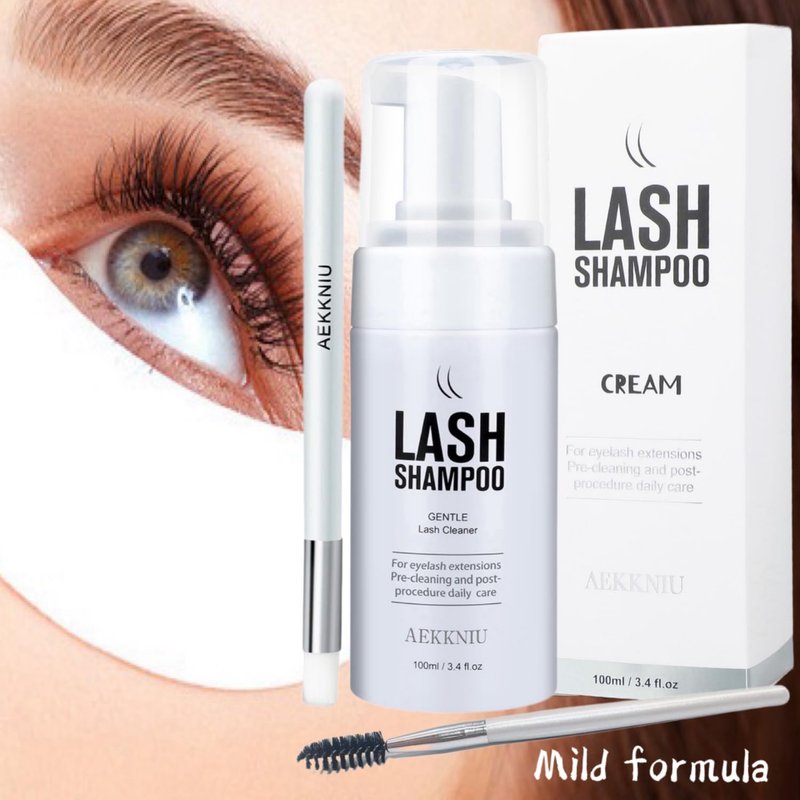 100ml Eyelash Extension Shampoo Brush/AEKKNIU- 3.4 fl.oz/Gentle Foaming Eyelid Cleanser/Extension and Natural Eyelash Cleanser/Safe Makeup Remover/Salon and Home Use